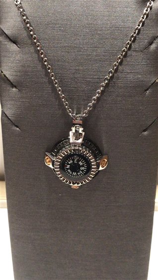 collana arkano in acciaio uomo con bussola e zirconi neri