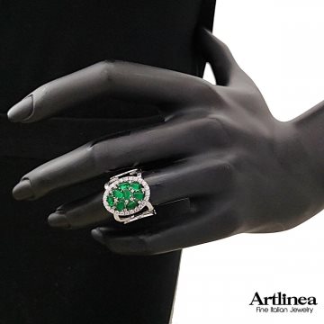 anello artlinea a fascia con zirconi e pietre naturali verdi misura 14 regolabile