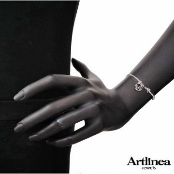 BRACCIALE IN ARGENTO ARTLINEA CON FARFALLE SMALTATE E PIETRE SWAROVSKI CM15,5 PIù CM3 DI ALLUNGO.