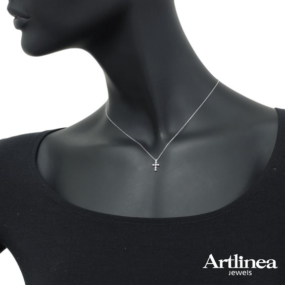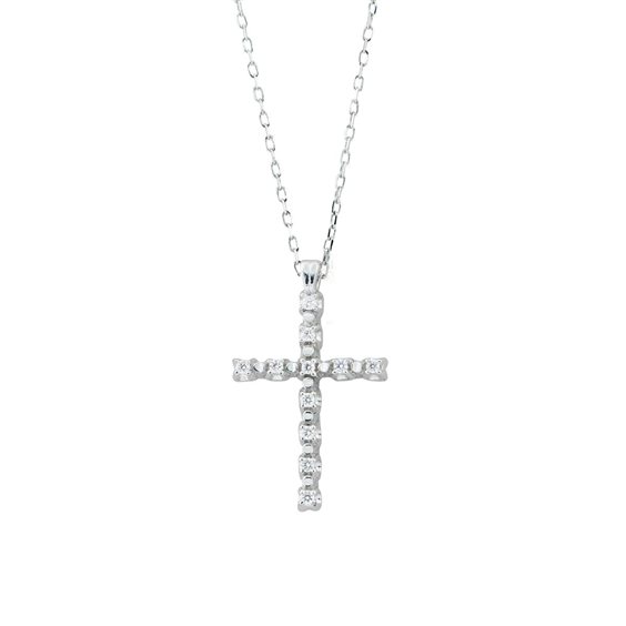 Collana in oro 18 carati con pendente a croce con diamanti bianchi naturali.