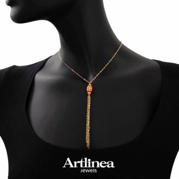 collana Artlinea in argento dorato con ciondolo a ciuffo, color fucsia