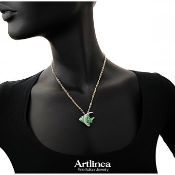 collana Artlinea in argento dorato con ciondolo smaltato verde e zirconi