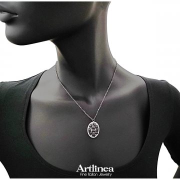 collana Artlinea in argento donna con ciondolo pietre nere e zirconi