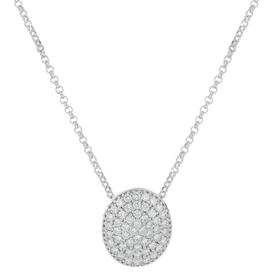 COLLANA ARTLINEA IN ARGENTO 925 CON PENDENTE OVALE IN ZIRCONI BIANCHI, MISURA 43 CM ESTENDIBILE A 45 CM, CHIUSURA MOSCHETTONE.