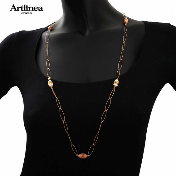 collana Artlinea argento placcato in oro cm.90 con smalti bianco e rosa