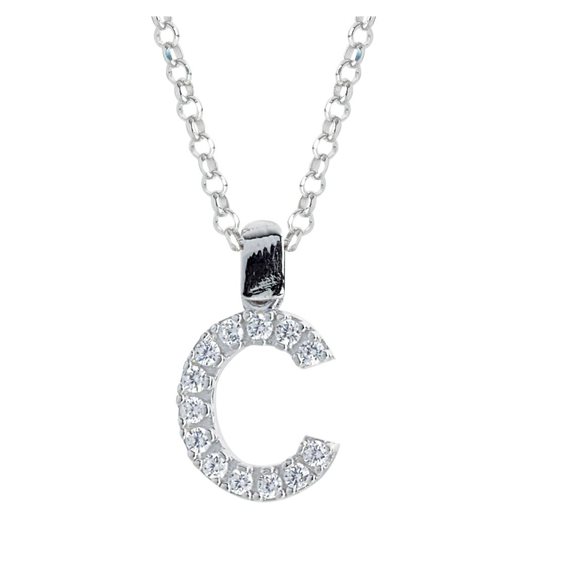 COLLANA ARTILINEA IN ARGENTO 925 CON PENDENTE INIZIALE C IN ZIRCONI BIANCHI A STAMPATELLO.