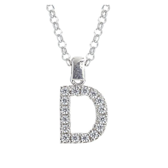 COLLANA ARTILINEA IN ARGENTO 925 CON PENDENTE INIZIALE D IN ZIRCONI BIANCHI A STAMPATELLO.