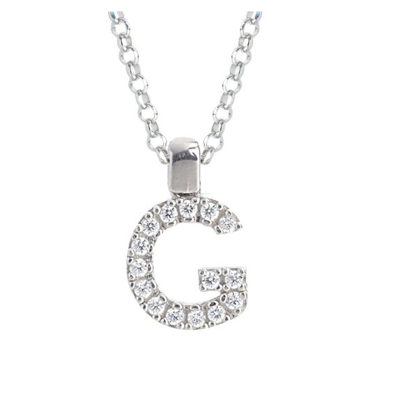 COLLANA ARTILINEA IN ARGENTO 925 CON PENDENTE INIZIALE G IN ZIRCONI BIANCHI A STAMPATELLO.