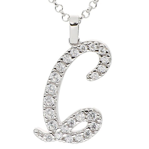 COLLANA ARTLINEA IN ARGENTO CON PENDENTE INIZIALE C IN ZIRCONI BIANCHI.