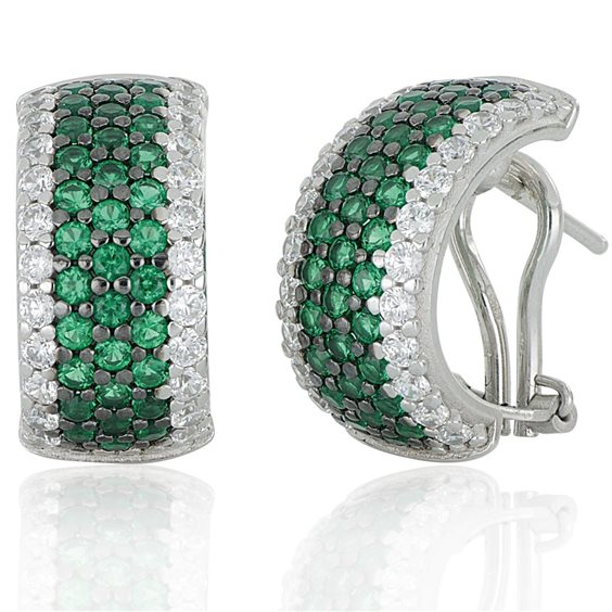 Orecchini in argento 925 con pavé di zirconi bianchi e verdi.