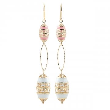 orecchini Artlinea pendenti in argento dorato e smalto rosa e bianco