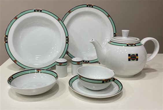 Lunga tradizione, design inconfondibile e massima qualità rendono Arzberg così particolare. Il marchio è sinonimo di grande stile. Un design senza tempo e ottima qualità dei prodotti: tipico di Arzberg. Da oltre ottant’anni la firma di questo popolare designer caratterizza le amate forme di queste porcellane, che vengono regolarmente insignite di numerosi premi internazionali di design e vendute con successo in tutto il mondo. La modellatura pregiata delle forme è da sempre il fulcro di Arzberg. Gettando lo sguardo sugli sviluppi e sulle tendenze future, lo stile del tempo non viene intuito, ma rimodellato. Dall’interazione di forme interessanti e pratica funzione nascono prodotti armoniosi a cui non è più possibile rinunciare, anche perché ci si identifica immediatamente con loro in maniera indissolubile. SERVIZIO PIATTI ARZBERG IN PORCELLANA BIANCO CON DECORI GEOMETRICI VERDE, ARANCIO E BLU COMPOSTO DA 83 PEZZI DI CUI: SERVIZIO TAVOLA 41 PEZZI: -12 PIATTI PIANI (25cm) -12 PIATTI FONDI (23cm) -12 PIATTI FRUTTA -1 ZUPPIERA -1 RAVIERA -1 INSALATIERA -1 PIATTO TONDO DA PORTATA -1 PIATTO OVALE DA PORTATA SERVIZIO CAFFE' 15 PEZZI: -1 CAFFETTIERA -1 ZUCCHERIERA -1 LATTIERA -12 TAZZE CAFFE' CON PIATTINO SERVIZIO THE 15 PEZZI: -1 THEIERA (h18cm x 25cm) -1 ZUCCHERIERA -1 LATTIERA -12 TAZZE (5.5cm) THE CON PIATTINO (14.5cm) 12 COPPETTE MACEDONIA (13.5cm)