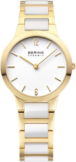Orologio Bering donna cassa in acciaio dorato con cinturino in ceramica bianca e quadrante bianco solo tempo