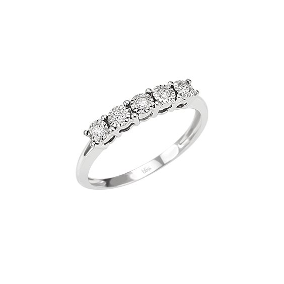 ANELLO BLISS DONNA IN ORO BIANCO KT 18 VERETTA A 5 DIAMANTI TAGLIO BRILLANTI KT 0.10 GH.