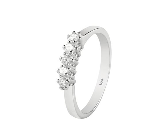 ANELLO BLISS DONNA IN ORO BIANCO KT 18 VERETTA A 5 DIAMANTI TAGLIO BRILLANTE KT 0.30 GH.