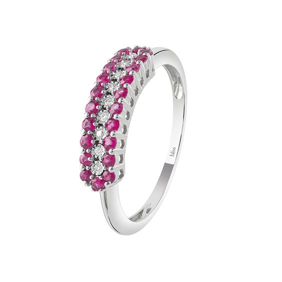 ANELLO BLISS IN ORO BIANCO KT 18 IN RUBINO KT 0.44 E DIAMANTI TAGLIO BRILLANTI KT 0.03 GH.