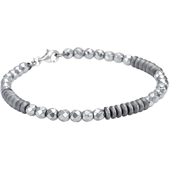 Bracciale in argento con rondelle rodiate ed ematite di colore argento. Charm Con logo Bliss