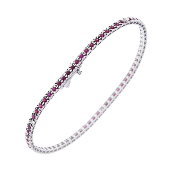 BRACCIALE TENNIS BLISS IN ORO BIANCO KT 18 CON RUBINI KT 1.28 E BRILLANTI KT 0.07 GH.