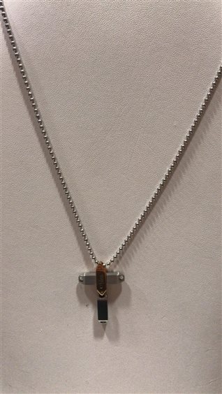 Catena in acciaio a palline con croce in acciaio e diamante nero