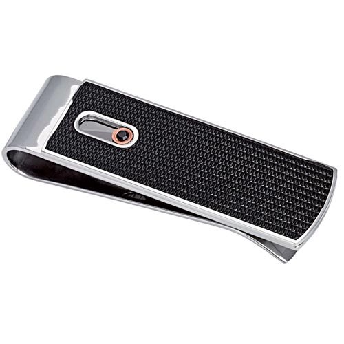 Fermasoldi della linea  in acciaio URBAN TAG con texture in pvd nero. Inserto in pvd rosa e diamante naturale black. misura cm 5 x 1.9 .peso gr 13.Nel retro possibilita' di essere inciso.