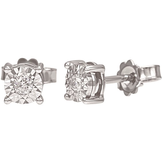 Orecchini punto luce da donna in oro bianco 750. Diamante da 0.10 carati, colore GH