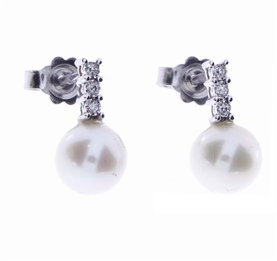 orecchini in oro bianco,perla diametro mm 7/7,5 e diamanti kt 0,03