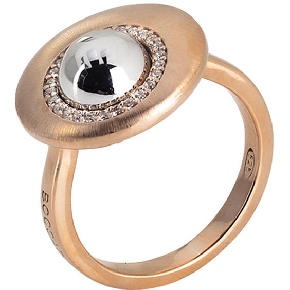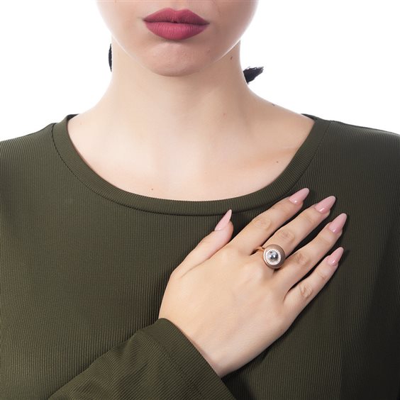 Anello Da Donna Di Boccadamo Della Collezione Jewels Della Linea Eclissi. Anello Eclissi Di Luna Placcato Oro Rosa Con Perla Naturale Centrale Decorata Da Pavè Di Zirconi. Materiale: Argento. Dimensione: Centrale Diametro Cm 1,7. Misura: 19. La Referenza È An463Rs-19