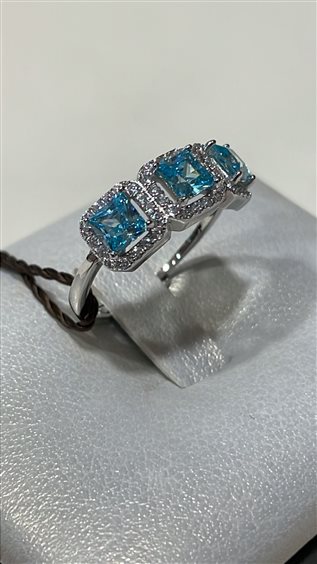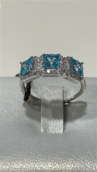 ANELLO BOCCADAMO DONNA IN ARGENTO 925 CON PIETRE ZIRCONI AZZURRE E BIANCHE, MISURE REGOLABILI.