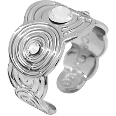 Anello Da Donna Di Boccadamo Della Linea Mediterranea Collezione Maya. Anello A Fascia In Bronzo Rodiato Dell'Altezza Di Cm 1,5, Con Decori Concentrici E Cristalli Swarovski Crystal. Anello Di Misura 13. La Referenza È Xan102 Questo anello verrà spedito con Scatola Originale Boccadamo