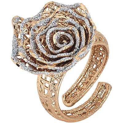 Anello Boccadamo Alissa – XAN131RS Realizzato in bronzo placato oro rosè, impreziosito da una rosa con dettagli glitterati. Realizzata con tecnica dell’elettrofusione.
