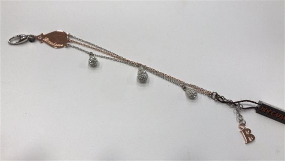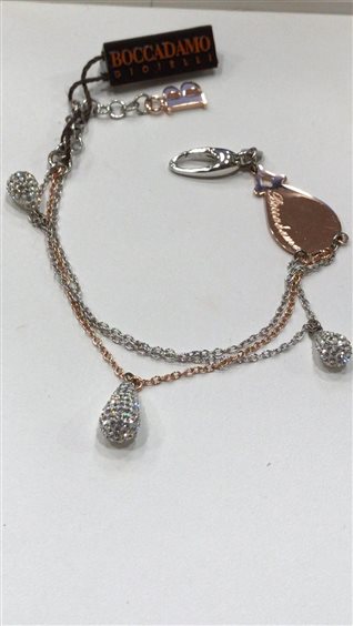 BRACCIALE BOCCADAMO DONNA IN ARGENTO A 3 FILI BICOLORE ARGENTO E ROSE'CON CIONDOLI IN PIETRE SWAROVSKI MISURA 18 CM ESTENDIBILE A 22 CM.