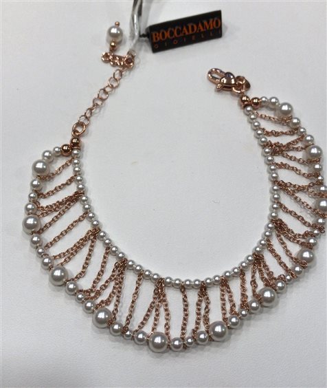 Bracciale in argento 925/°°° placcato oro rosa con perle Swarovski elements. Lunghezza 18 cm estendibile a 23cm