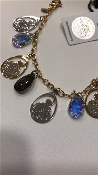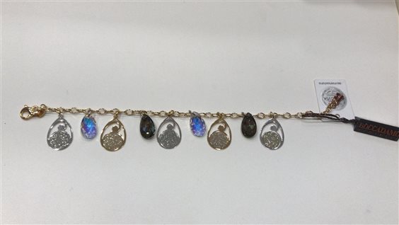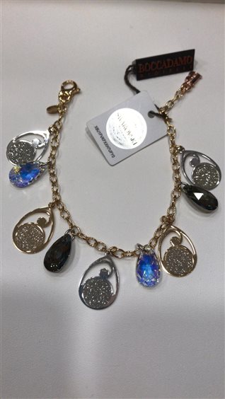 BRACCIALE BOCCADAMO DONNA IN ARGENTO DORATO CON ELEMENTS SWAROVSKI E GLITTER ARGETATO MISURA CM 18 ESTENDIBILE A CM 20.5 CHIUSURA A MOSCHETTONE.