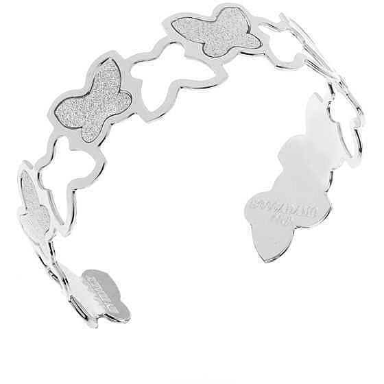 Prodotto: bracciale donna gioielli Boccadamo Gloss GB/BR11 Bracciale Da Donna Di Boccadamo Della Linea Mya, Collezione Gloss. Bracciale Rigido Rodiato Del Diametro Di 6 Cm, Con Farfalle Glitterate E Traforate E Di Larghezza Cm 1,6. Questo bracciale verrà spedito con Scatola Originale Boccadamo