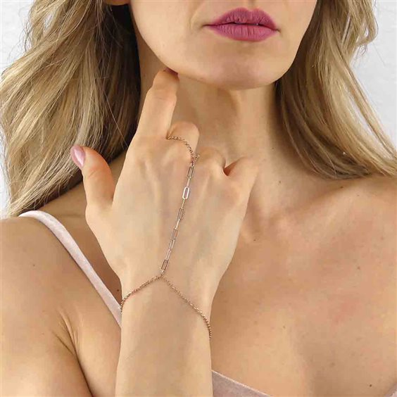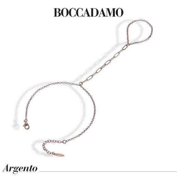 BACIAMANO BOCCADAMO IN ARGENTO PLACCATO ORO ROSA Materiale: argento Produzione: realizzato in Italia Misure: lunghezza cm 16, estendibile fino a cm 20 Chiusura: con moschettone Garanzia: 2 anni
