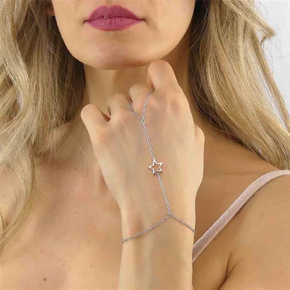 BACIAMANO BOCCADAMO IN ARGENTO CON STELLA PLACCATA ORO ROSA. Materiale: argento Produzione: realizzato in Italia Misure: lunghezza cm 16, estendibile fino a cm 20 Chiusura: con moschettone Garanzia: 2 anni