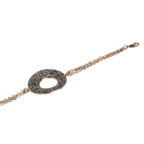 Bracciale doppio filo in bronzo placcato oro rosa con centrale in Swarovski crystal rock metallic silver. Lunghezza cm 15,5, estendibile fino a cm 21.