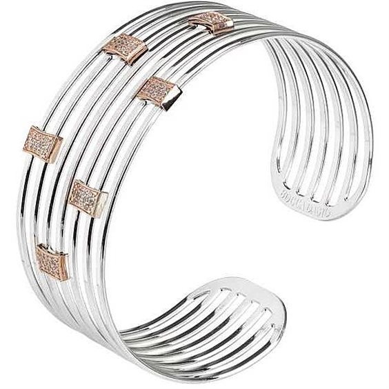Bracciale Da Donna Di Boccadamo Della Linea Mediterranea Della Collezione Starry. Bracciale Rigido In Bronzo Rodiato Con Un Diametro Di Cm 6 Con Inserti Placcati Oro Rosa E Zirconi Di Misura Cm 3. La Referenza È Xbr423 Questo bracciale verrà spedito con Scatola Originale Boccadamo