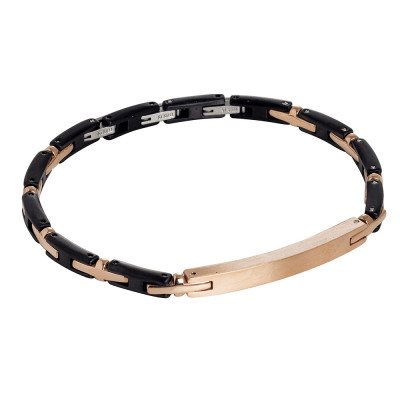 Bracciale in acciaio dorato con moduli in pvd nero. Lunghezza da cm 21 a cm 18