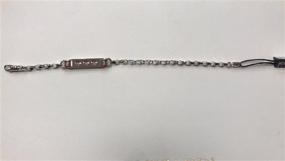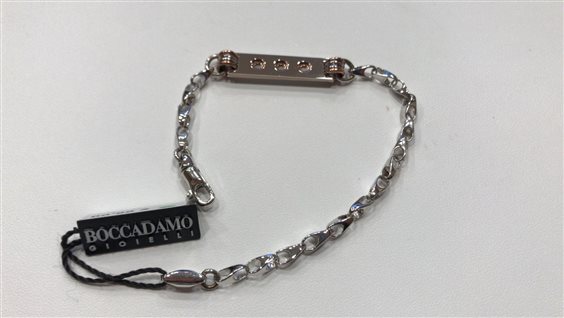 BRACCIALE BOCCADAMO UOMO IN ARGENTO BIANCO E ROSA CON TARGHETTA E CHIUSURA MOSCHETTONE.