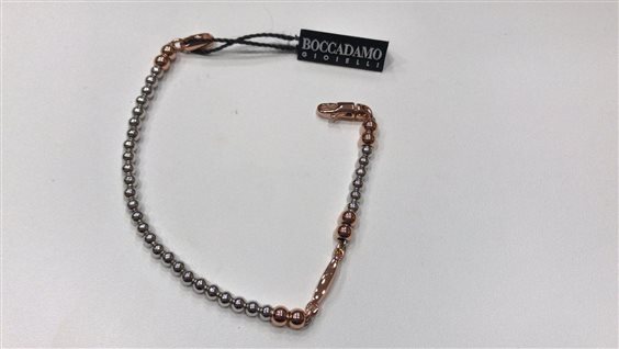 BRACCIALE BOCCADAMO UOMO IN ARGENTO MAGLIA A PALLINR CON INSERTI ROSA E CHIUSURA MOSCHETTONE.