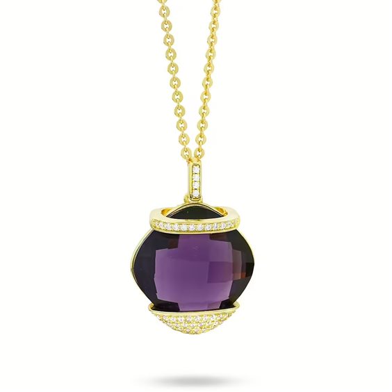 Prodotto: collana donna gioielli Bottega Boccadamo Zoe BGR116DV Collana da donna di Bottega Boccadamo della collezione Zoe. Collana placcata oro giallo con pendente di cristallo color ametista da 14 mm racchiuso in un doppio pavè di zirconi. Materiale: argento. Produzione: realizzato in Italia. Misure: lunghezza cm 39 estendibile fino a cm 44,5. Dimensione: cristallo cm 1,4 x 1,4. Chiusura: con moschettone. La referenza è BGR116DV Questo articolo verrà spedito con Scatola Originale Bottega Boccadamo