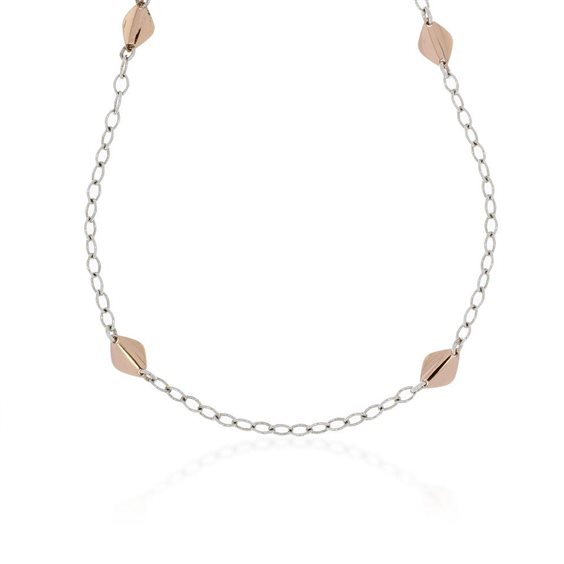 Collana donna Boccadamo Gioielli GR267 a maglia in argento 925 bianco e rosé. Chiusura a moschettone. Lunghezza cm. 44,5.
