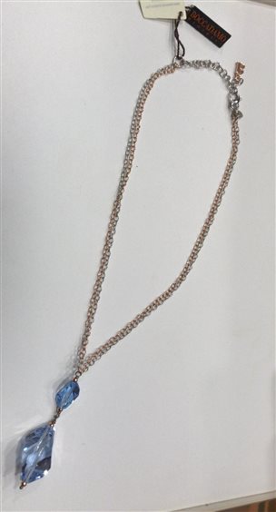 COLLANA BOCCADAMO DONNA IN ARGENTO 2 FILI BIANCO E ROSA CON PENDENTE PIETRE SWAROVSKI AZZURRE, MISURA COLLANA CM 40ESTENDIBILE CM 45.
