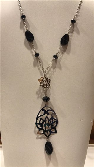COLLANA BOCCADAMO DONNA IN ARGENTO CON PENDENTE CON PIETRE DURE SWAROVSKI NERE.