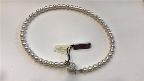 COLLANA BOCCADAMO IN PERLE SWAROVSKI CON GANCIO IN ARGENTO E PAVE'DI PIETRE SWAROVSKI BIANCHI,GIROCOLLO 40 CM.