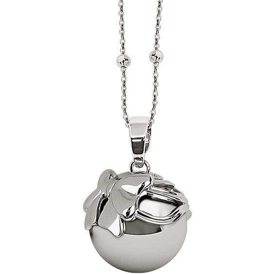 Collana Da Donna Di Boccadamo Della Linea Mya Collezione Angelomio. Collana Lunga Rodiata Con Ciondolo Sonoro Pendente E Coppetta Avvolta Da Una Decorazione A Forma Di Fiocco Realizzata In Acciaio. Diametro Boule Sonora 22Mm Lunghezza Massima 100Cm. Chiusura: Con Moschettone. La Referenza È Tr/Gr25 Questo collana verrà spedito con Scatola Originale Boccadamo