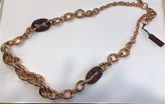 COLLANA BOCCADAMO DONNA,CATENA VISTOSA CON INSERTI IN GLITTER MARRONE E CHIUSURA A MOSCHETTONE.