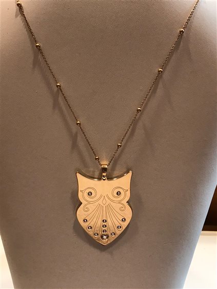 Collana donna in bronzo dorato, Gufetto con pietre swarovski della dimensione di 6 cm x 4,1 cm. Lunghezza della collana 88 cm riducibile fino a 84 cm. Ogni Gioiello Boccadamo è realizzato con materiali anallergici di alta qualità, è corredato del Certificato Ufficiale di Autenticità e Garanzia, scontrino fiscale della nostra gioielleria, confezione originale.