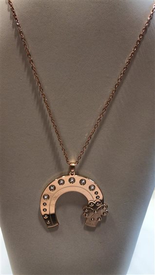 COLLANA BOCCADAMO DONNA IN OTTONE ROSATO LUNGA CON PENDENTE FERRO DI CAVALLO PORTA FORTUNA CON QUADRIFOGLIO E ZIRCONI BIANCHI.